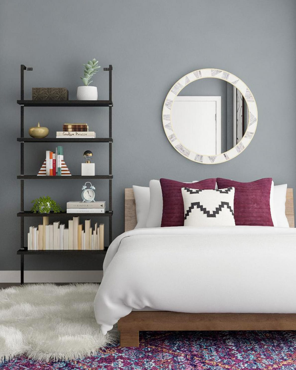 Bookcases make use of your space vertically so you can maximize storage while minimizing use of floor space. Want to take it a step further? Try swapping your nightstand or side table for a bookcase. You could even consider finding a bookcase with a built-in desk option as an easy way to squeeze in a home office to your small apartment! (In fact, that’s one of our favorite tips for small apartment office designs!